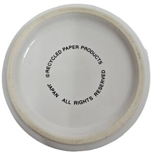 Features vintage 80s Sandra Boynton Grumpy Boynton Cat coffee mug tea cup, red banner that says "Keep Your Paws Off My Mug", cartoon drawing of gray and black Boynton Cat, white glazed ceramic coffee mug tea cup, Made in Japan. Perfect gift for any cat lover!