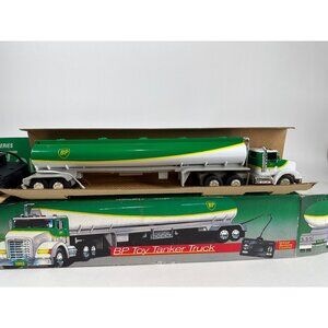This collectible BP Toy Tanker Truck from 1992 is a limited edition model. It features a remote control, though functionality remains untested.