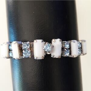 Vintage Bracelet 7" Blue & White Crystal Box Chain