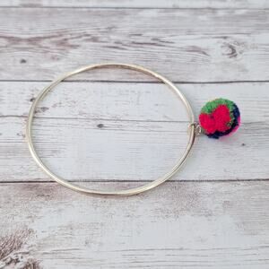 Vintage Bracelet 9" Gold Tone Bangle with Fluffy Multi Colored Ball Charm