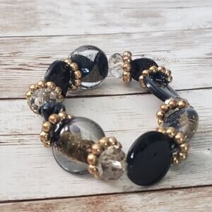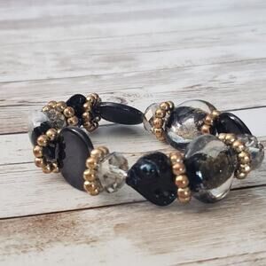 Vintage Bracelet - Black & Gold Tone Chunky Stretch Bracelet