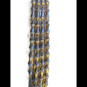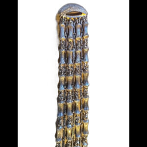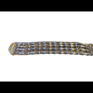 This vintage bracelet features a unique bone or bamboo look design, measuring 7 inches long and 1 inch wide. The silver color adds a touch of elegance to the piece, making it a stylish accessory for any outfit. The intricate design and material used give this bracelet a timeless and classic appeal, perfect for those who appreciate vintage and antique jewelry pieces.