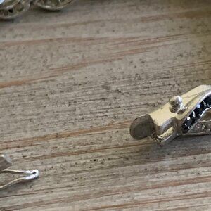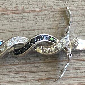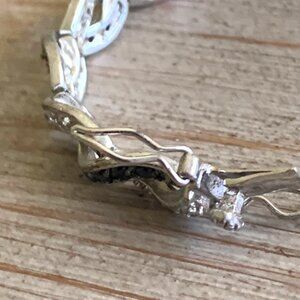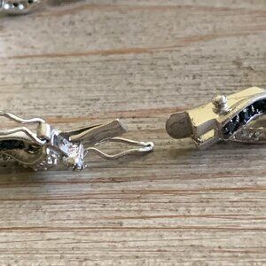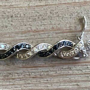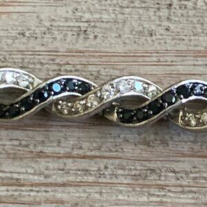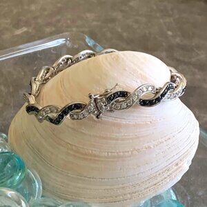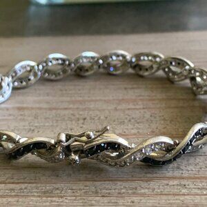 This gorgeous bracelet is from 2000 & is in excellent condition with it's faux gems. Silver & black tone goes with just about anything. The lobster clasp insures this bracelet with stay securely on your wrist. Piece is 7 inches long laying flat.