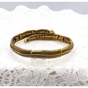 Vintage Bracelet Feather design wrap style brushed gold finish by Alex & Ani