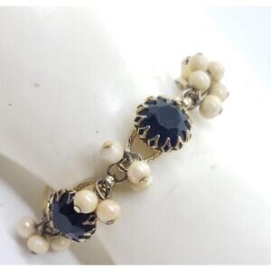 Vintage Art Deco Bracelet Gold Tone Black Glass Bead Cluster