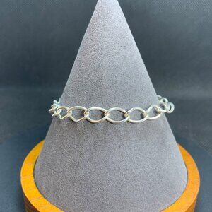 Vintage Bracelet Sterling Silver 925 Oval Link Curb Link Charm 6.75" Long