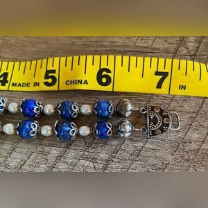 Vintage Bracelet Women’s 7” Sterling Silver 925 Blue Lapis Lazuli Pearls