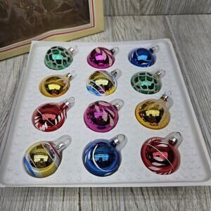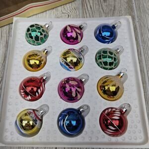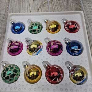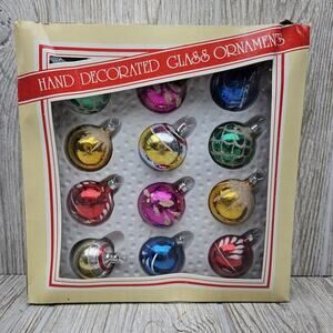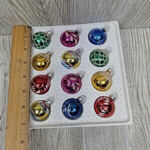 Vintage Hand Decorated Glass Christmas Ornaments Set of 12 Mini Multicolor Bradford