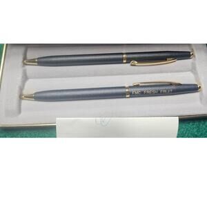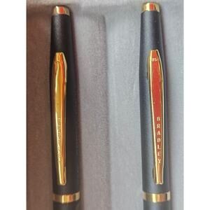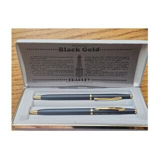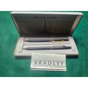 This vintage Bradley Corporate pen and mechanical pencil and pen set is a stylish addition to any collection. The set features a sleek black design, perfect for professional use or as a thoughtful gift.