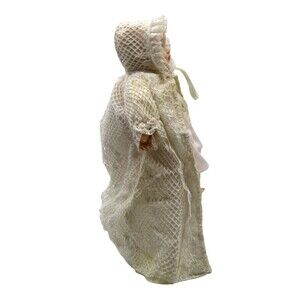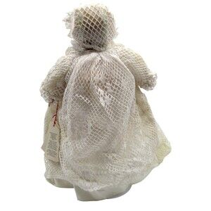 She has a porcelain head, hands and feet, with a cloth body. She measures 10" long.