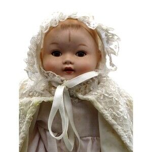 Vintage Bradley Dolls Porcelain Bisque Hand Painted Baby Doll Cloth Body 10"