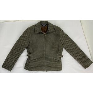 Vintage Braebrook 100% Wool Houndstooth Jacket Brown Tan - Women's Size 10