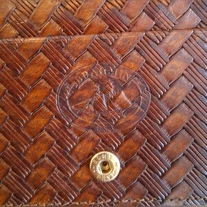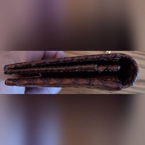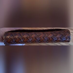 Vintage Brahmin Brown Woven Leather Multi Area Casual Keychain Wallet Purse Bag