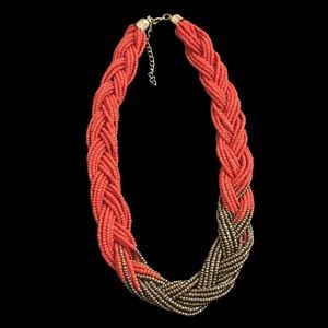 Vintage Orange and Gun Metal Black Beaded Braided Design Necklace