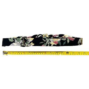 Vintage Braided Belt Floral Black Pink 1980s Adjustable Hook Loop Retro Fabric