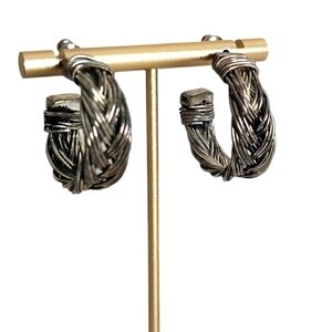 Vintage Braided Braided Silver Chunky Hoop Earrings
