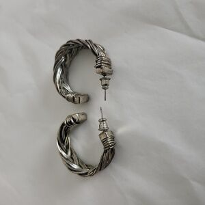 * Vintage * Braided Silver * Open Hoop * Pierced