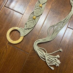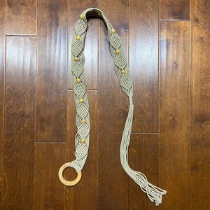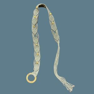 Vintage Braided Rope Beaded Woven Brown Tan Belt Boho Women's Size Large