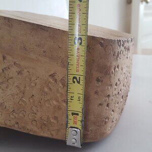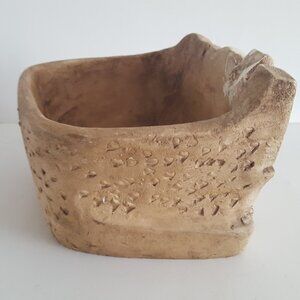 Pre-owned, in AS IS condition. **AT THE TOP OF THE BACK OF THE "L" THE WOOD APPEARS TO HAVE CHIPPED.**With a plant inside, would not be very noticeable. Wood planter. Made in USA 1974. Approximate Measurements: 6"W (front of planter) x 4"H (front of planter) x 5.5"W (rear of planter) x 3" H (rear of planter) 'Please see photos for all measurements. This is a natural wood planter with inherent wood imperfections.