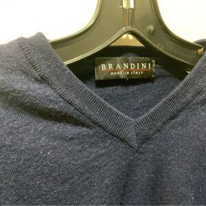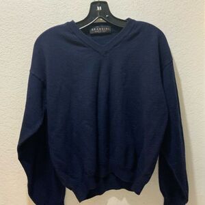 Vintage Brandini Blue 100% merino pure wool Pullover V Neck Sweater Italy