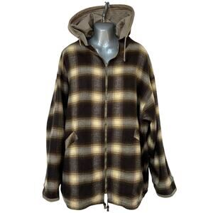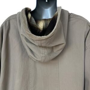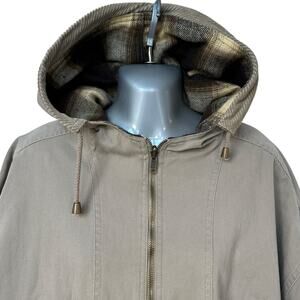 Vintage Brandon Thomas Chore Coat Reversible Khaki Brown Plaid Hooded Men's Size Large