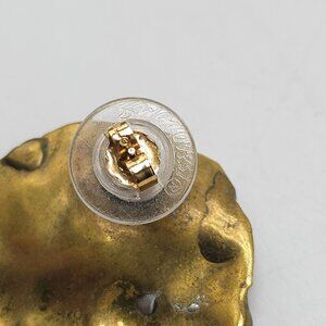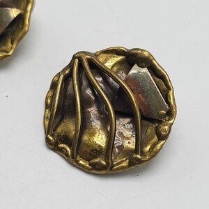 Vintage Brass Abstract Clip-On Earrings Textured Design Gold-Tone Backing