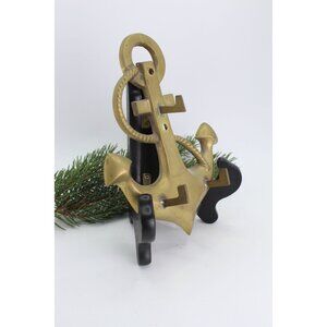 Vintage Brass Anchor Wall Hook Nautical 3 Hook Hanger Solid Brass Rope Detail 6x