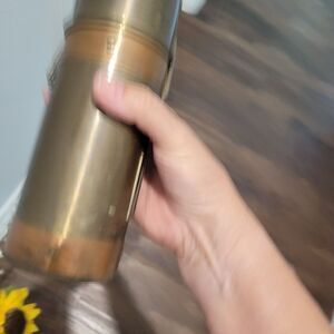 This vintage brass and copper matchstick holder striker with a handle measures 8 inches in length. The rustic design and mid-century modern aesthetic make it a unique and stylish collectible for those who appreciate tobacciana items. It functions as a practical and decorative piece for adding a touch of vintage charm to any space.