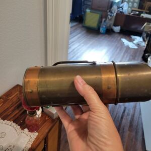 Vintage Brass And Copper Rustic Match Stick Holder Striker + Handle 8” MCM Old