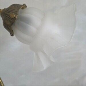 Art Deco floral table lamp made from brass with a white frosted glass lampshade