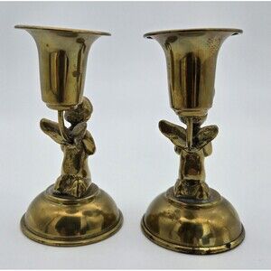 Vintage Brass Angel Candlestick Holders a beautiful pair of praying winged figures that bring timeless charm and spiritual elegance to any space. Perfect for display, holiday décor, or as a meaningful gift.