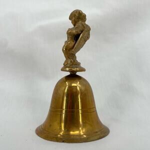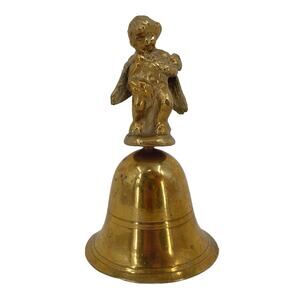 Vintage Brass Angel Cherub Hand Bell Holiday Decor