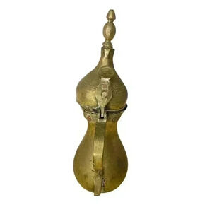 Vintage Brass Arabic Dallah Fluted Spout Coffee Pot This vintage brass coffee pot is a stunning piece that will add a touch of elegance to your collection. Made in the Middle East, this antique original has a beautiful gold color and is perfect for those who appreciate brass. The pot comes with an in-lid that has come loose, adding to its unique character. Its primary material is brass, making it a durable and long-lasting piece. This pot is perfect for those who love to collect antiques from the Middle East and add a touch of history to their home decor.