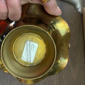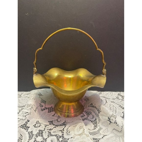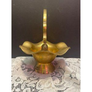 Vintage Brass Basket Swivel Handle Scalloped Rim Pedestal Basket MCM