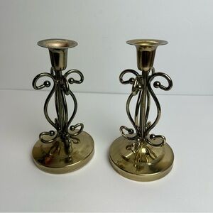 Vintage Brass Candle Holder Pair Set of 2 Boho Bohemian 80s 90s