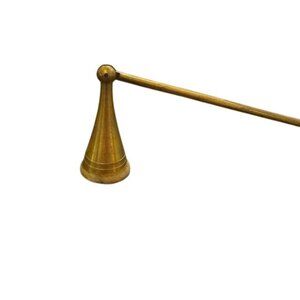 Visible tarnish and wear on the brass, especially inside the snuffer cone. Small scratches on bead surface.
