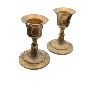 Vintage Brass Candlestick Holders Pair Decorative Beaded Rim Antique Style Home