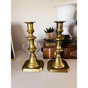 Vintage Brass Candlestick Holders Pair, Hexagon Base, 8” Colonial Revival