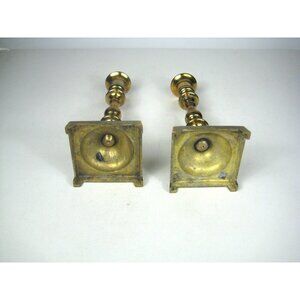 Vintage Brass Candlestick Holders Set of 2 Made in India Square Footed Base