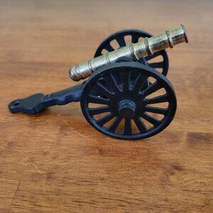 Vintage Brass Cast Iron Mini Cannon Artillery Civil War Toy Figurine Metal T3