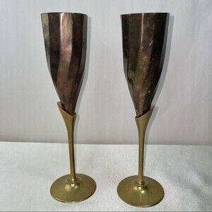 Vintage Brass Champagne Flutes MCM Twisted Goblets Toasting Glasses 2