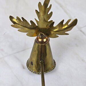 Vintage Brass & Copper Candle Snuffer Holly Leaves & Berries with Bell Christmas