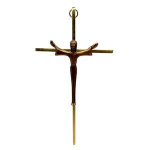 Vintage Brass Crucifix Cross Detailed Christ Figure Wall Hanging MCM