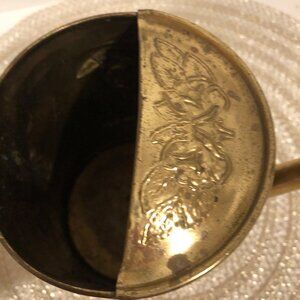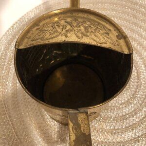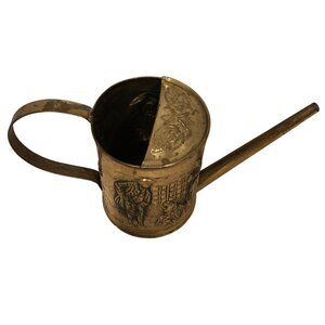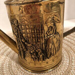 Vintage Brass Decorative Watering Can With Embossed Colonial Scene Design