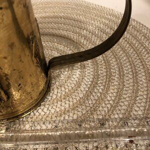 This vintage brass watering can features an embossed colonial scene, blending functionality with historical artistry. A unique addition to home decor.
