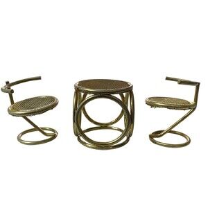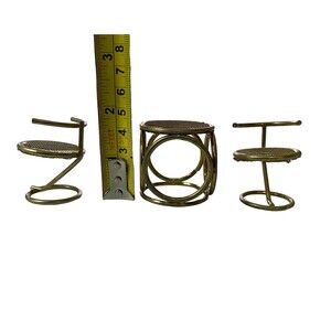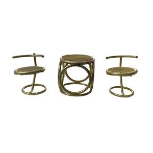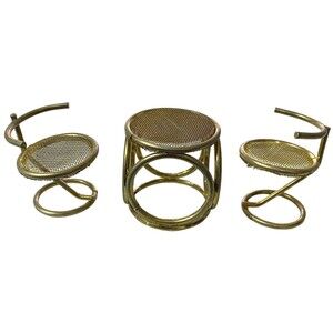 Vintage Brass Dollhouse Furniture 1 Table 2 Chairs Mesh Gold Furniture