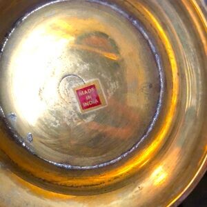 Made in India. This is a vintage piece. It has been cleaned to shine up the brass a little bit but still has the aged vintage look.