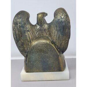 Vintage Brass Eagle Figurine With Marble Base Large Patriotic Sculptural Decor