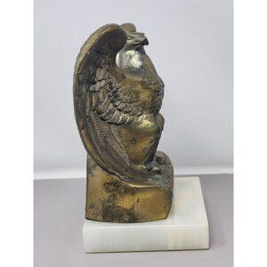This vintage brass eagle figurine with intricate feather detailing sits atop a sturdy marble base, offering timeless elegance for collectors or home decor.