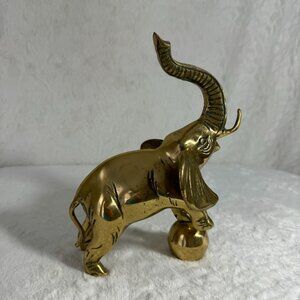Vintage Brass Elephant Statue With Raised Trunk & Ball contemporary home design